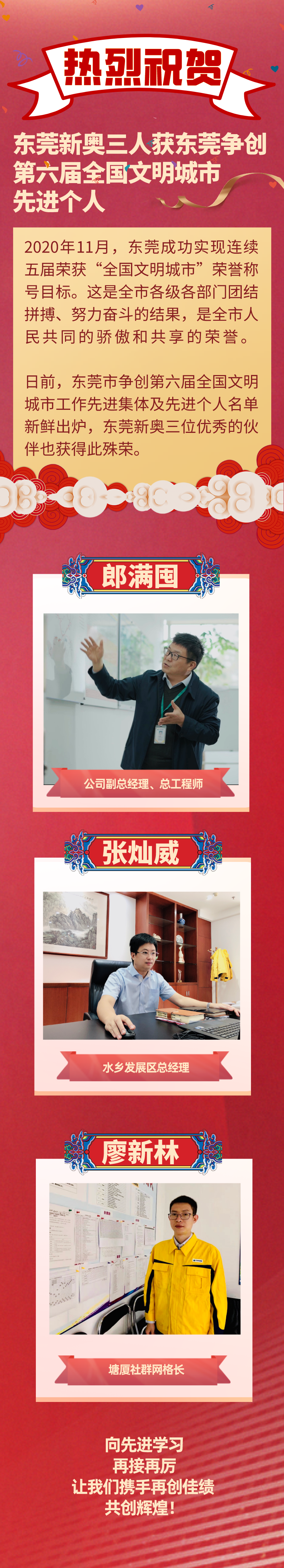 祝賀!東莞新奧三人獲東莞爭創第六屆全國文明城市先進個人